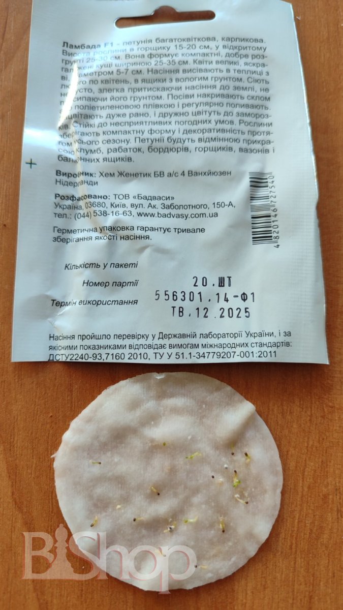 - Петунія мультіфлора Ламбада F1 20 гранул 12.2025р СЦ-